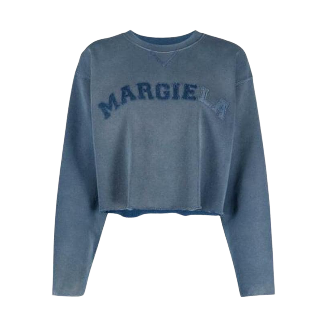 (W) 메종 마르지엘라 로고 빈티지 코튼 크롭 스웨트셔츠 블루