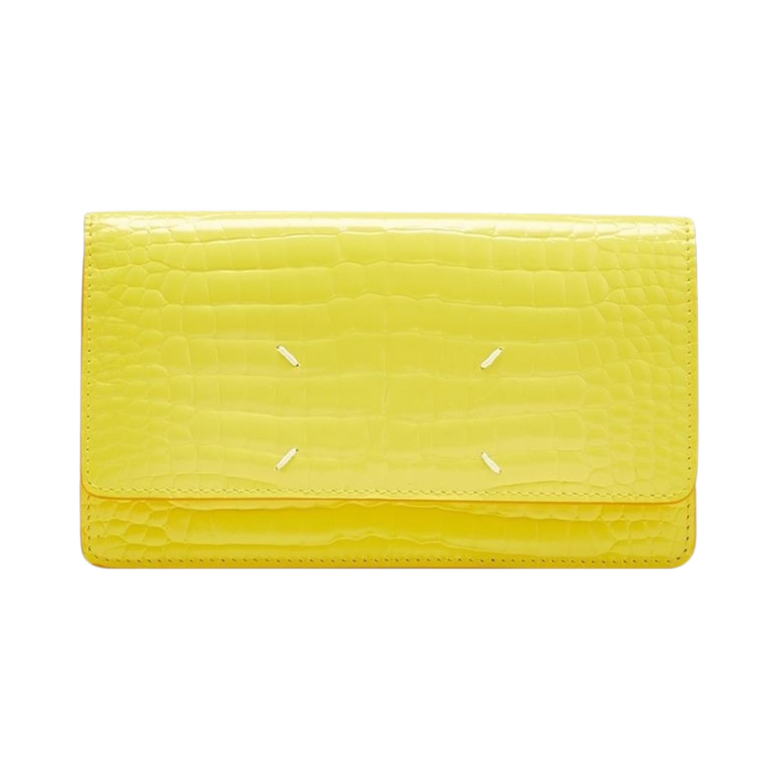메종 마르지엘라 보빈 레더 크로커다일 프린트 스티치 체인 지갑 옐로우