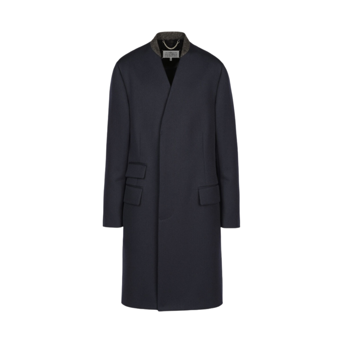 메종 마르지엘라 미니멀 카라리스 코트 네이비