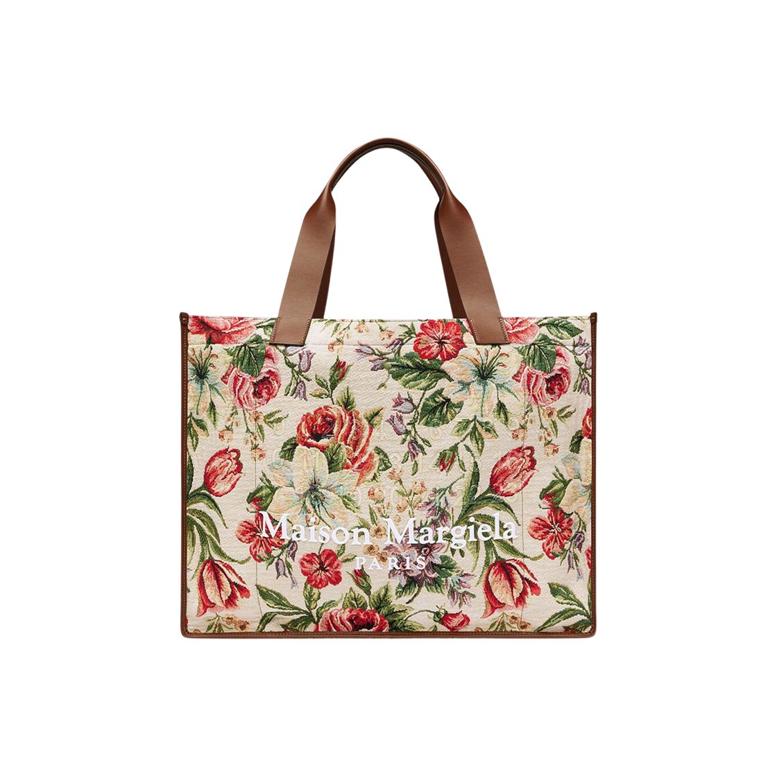 메종 마르지엘라 카바스 쇼핑백 라지 아이보리 플로럴 블루 레드