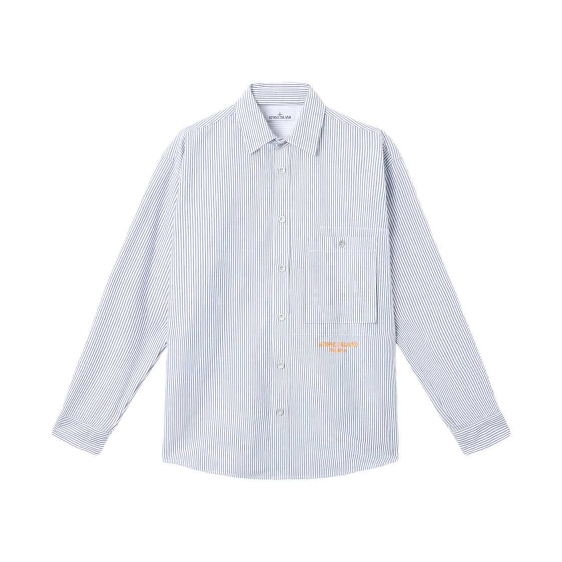 스톤 아일랜드 1100007 스트라이프 옥스포드 코튼 마리나 롱 슬리브 셔츠 체스트 포켓 앤 버튼 마린 블루 - 25SS