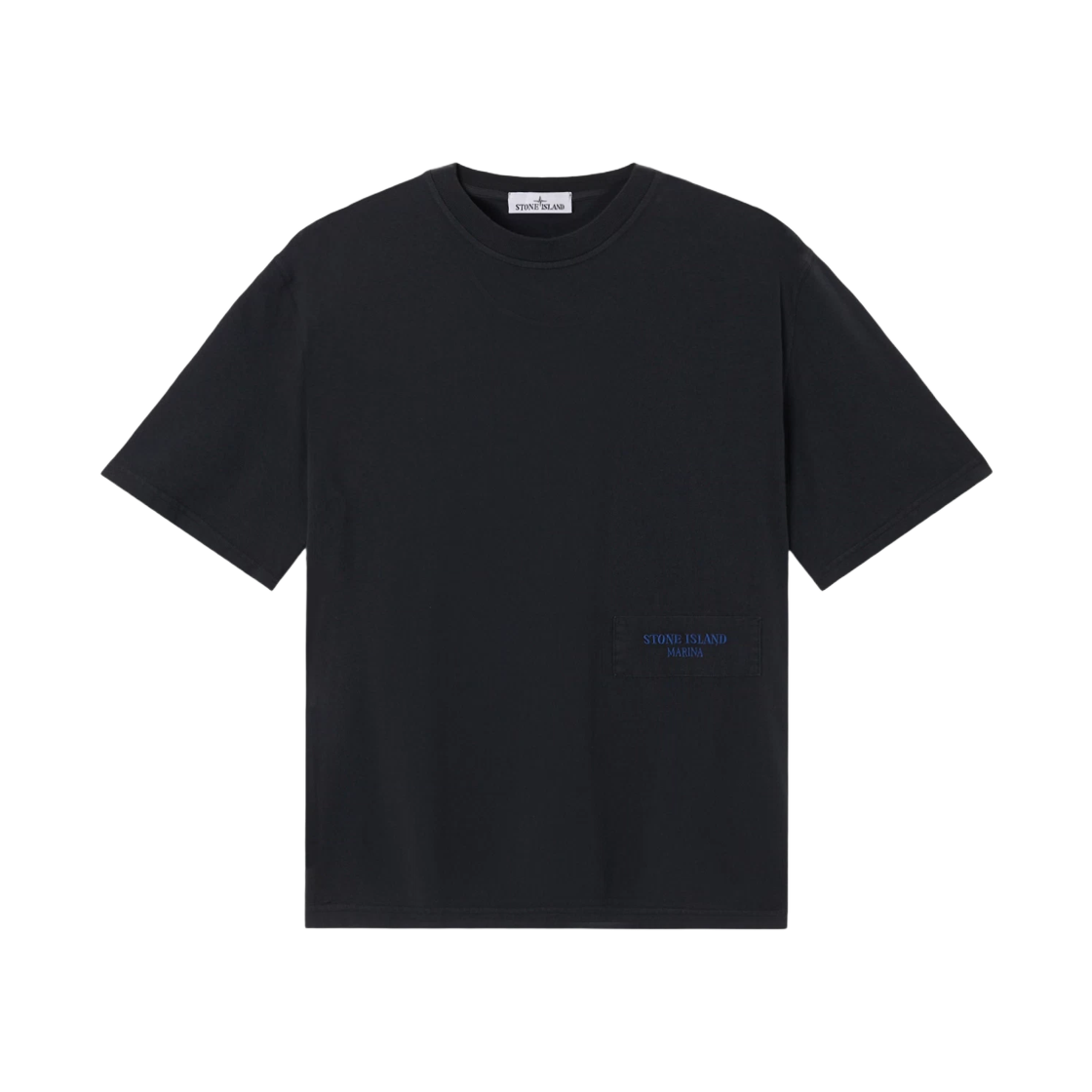 스톤 아일랜드 2100023 콤베드 오가닉 코튼 저지 마리나 오버사이즈 숏슬리브 티셔츠 헤링본 패치 네이비 블루 - 25SS