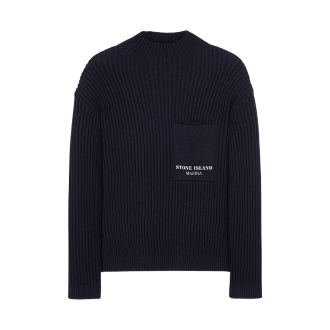 스톤 아일랜드 543XA 마리나 풀 립드 퓨어 울 모크 터틀넥 니트 네이비 블루 - 23FW