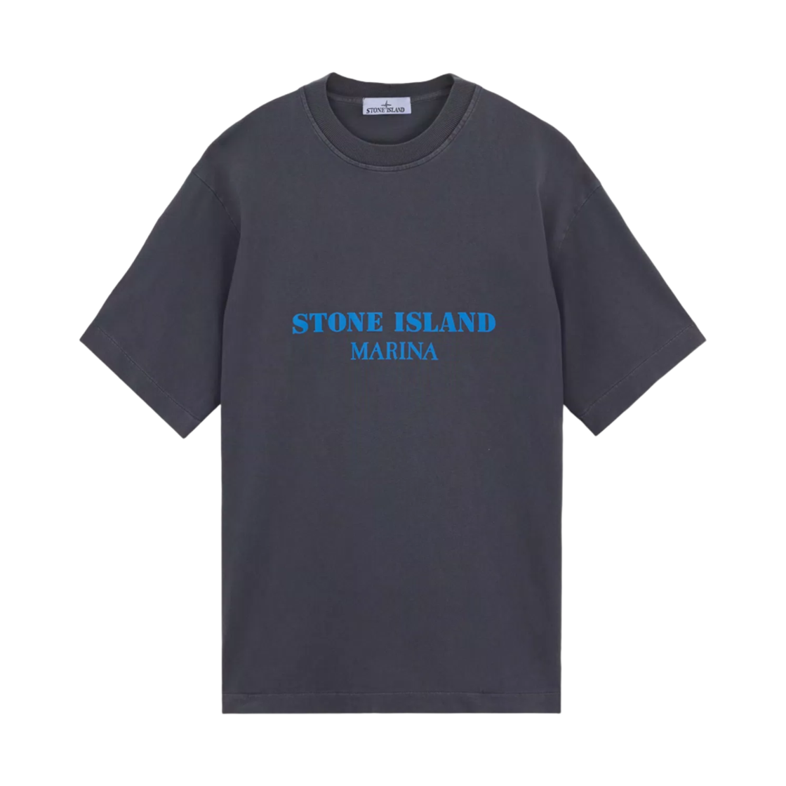 스톤 아일랜드 207X4 24/2 코튼 저지 올드 이펙트 스톤 아일랜드 마리나 오버사이즈 핏 숏슬리브 티셔츠 잉크 블루 - 24FW