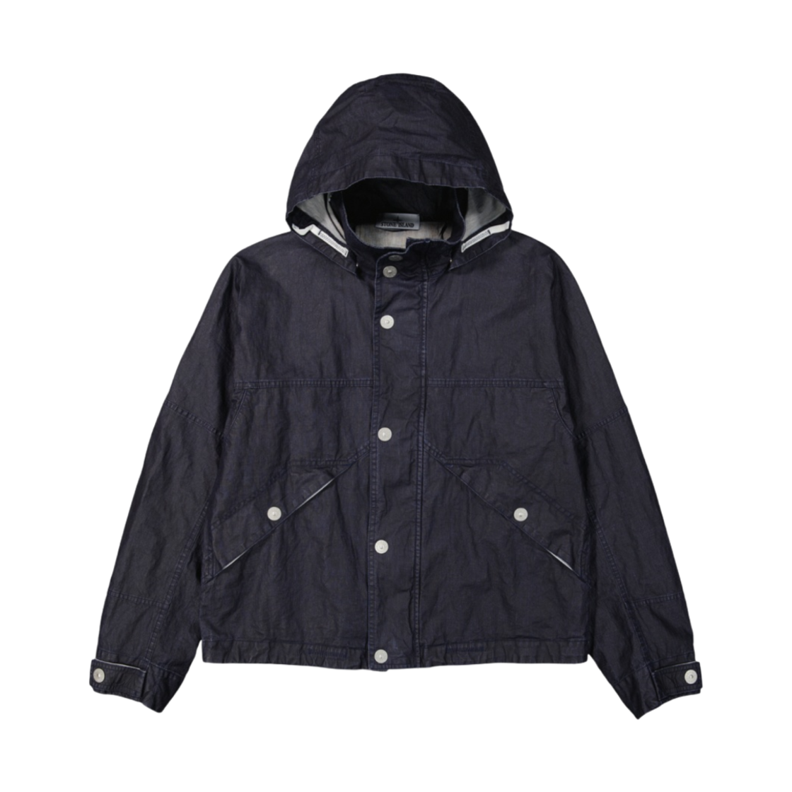 스톤 아일랜드 418X1 마리나 로우 플레이티드 리넨 후드 블루종 로얄 블루 - 24SS