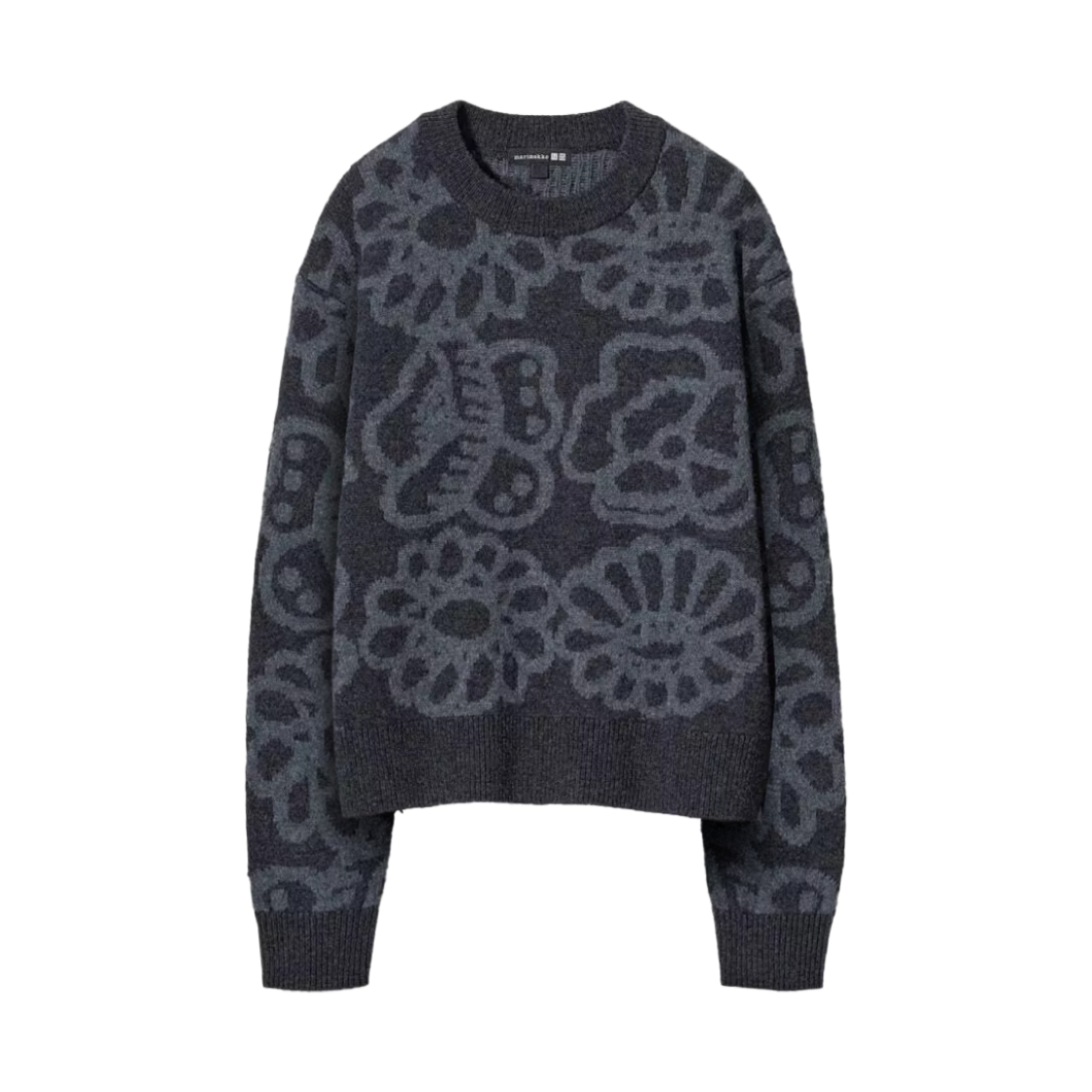 (W) 유니클로 x 마리메꼬 램스울 크루넥 스웨터 다크 그레이 - KR