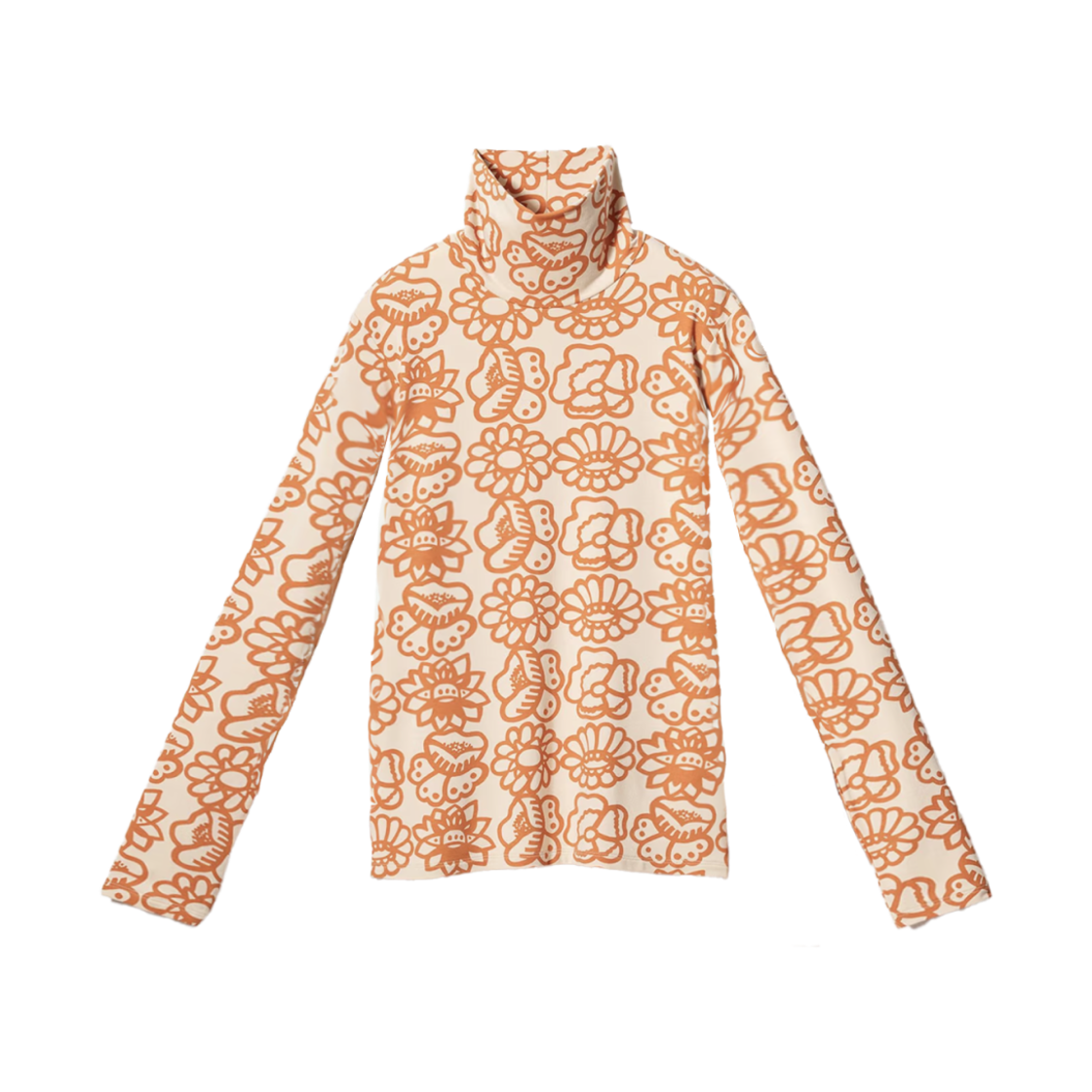 (W) 유니클로 x 마리메꼬 히트텍 터틀넥 플라워 티셔츠 오렌지 - KR