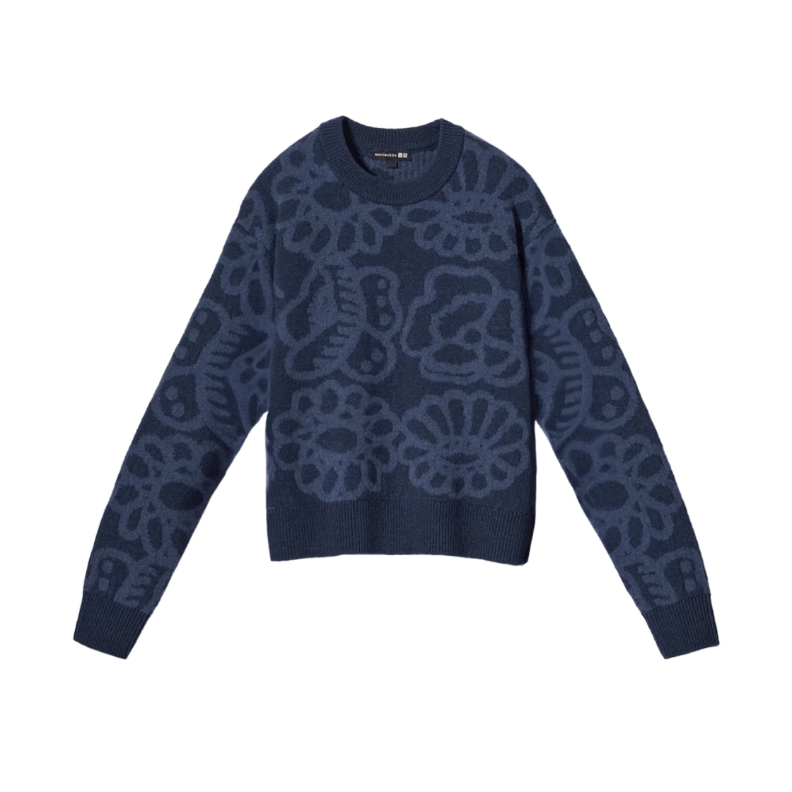 (W) 유니클로 x 마리메꼬 램스울 크루넥 스웨터 네이비 - KR