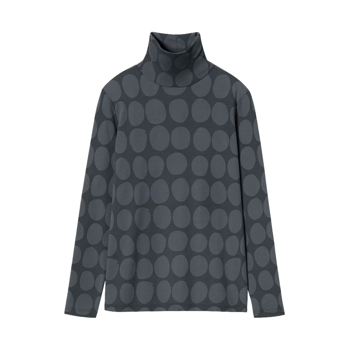 (W) 유니클로 x 마리메꼬 히트텍 터틀넥 도트 티셔츠 다크 그레이 - KR