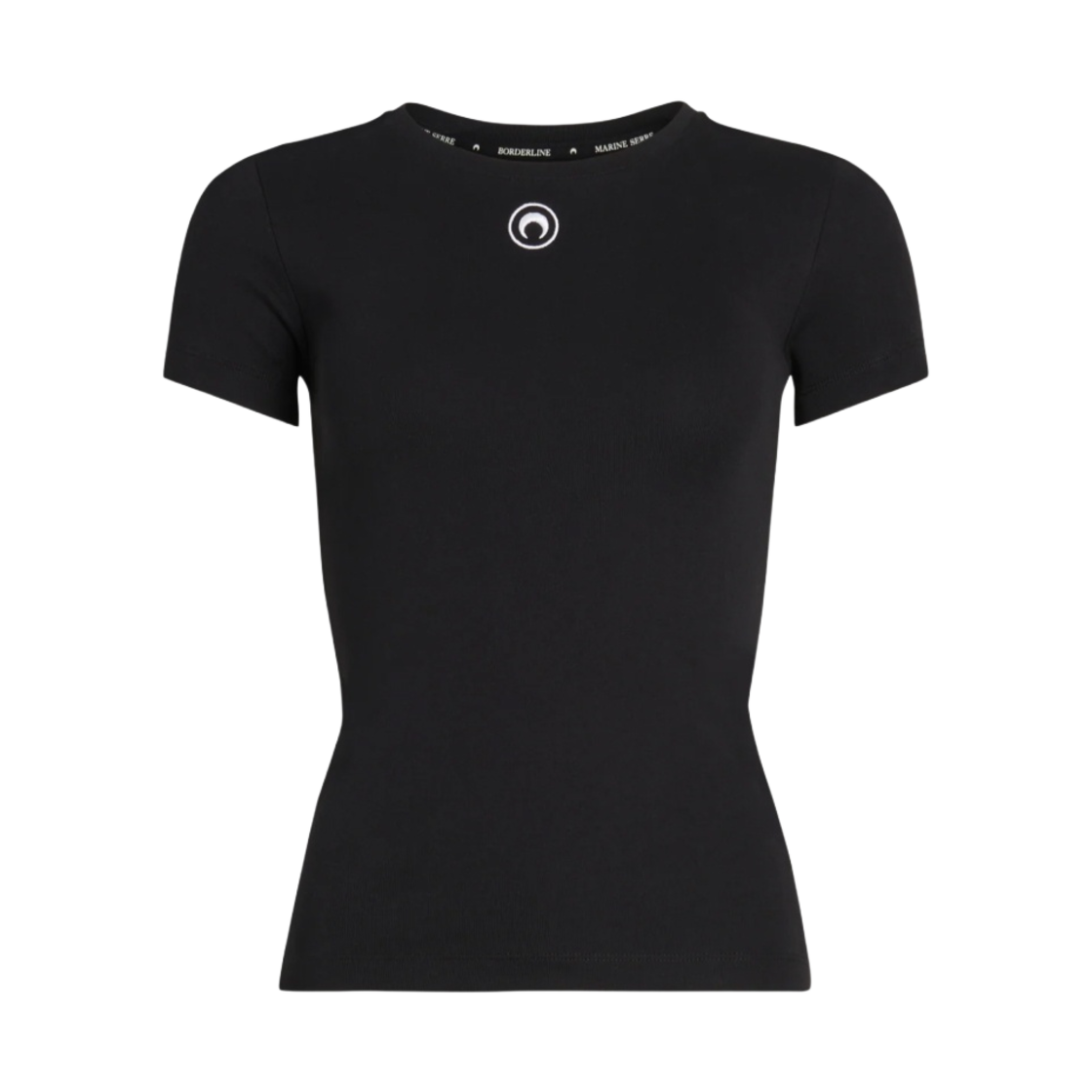 (W) 마린 세르 문 로고 립드 저지 아웃 티셔츠 블랙