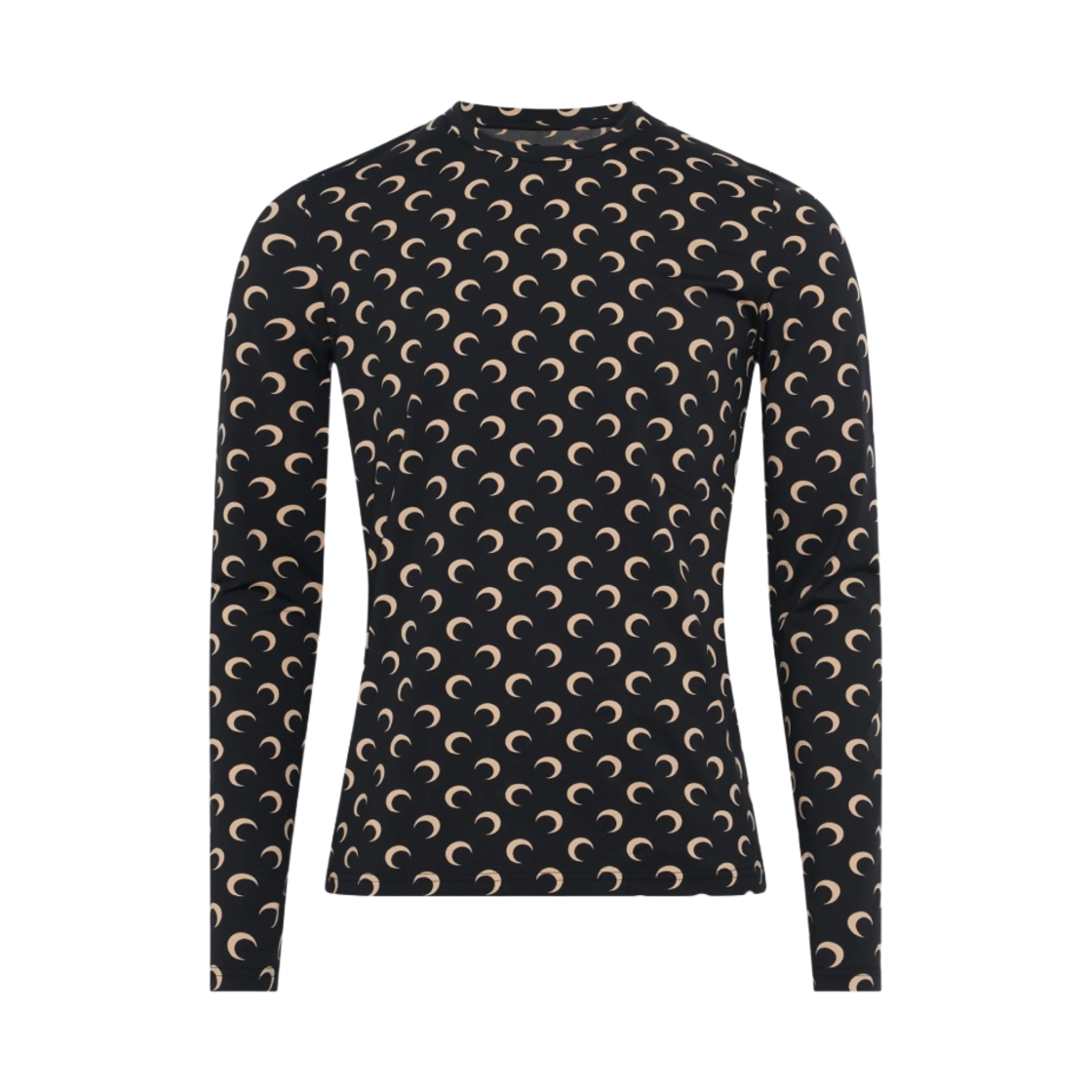 마린 세르 문 프린트 저지 세컨드 스킨 레귤러 탑 문 탄 온 블랙