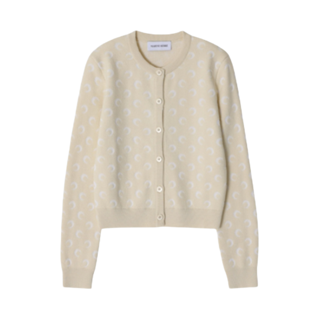 (W) 마린 세르 문 로고 니트 핏티드 가디건 베이지