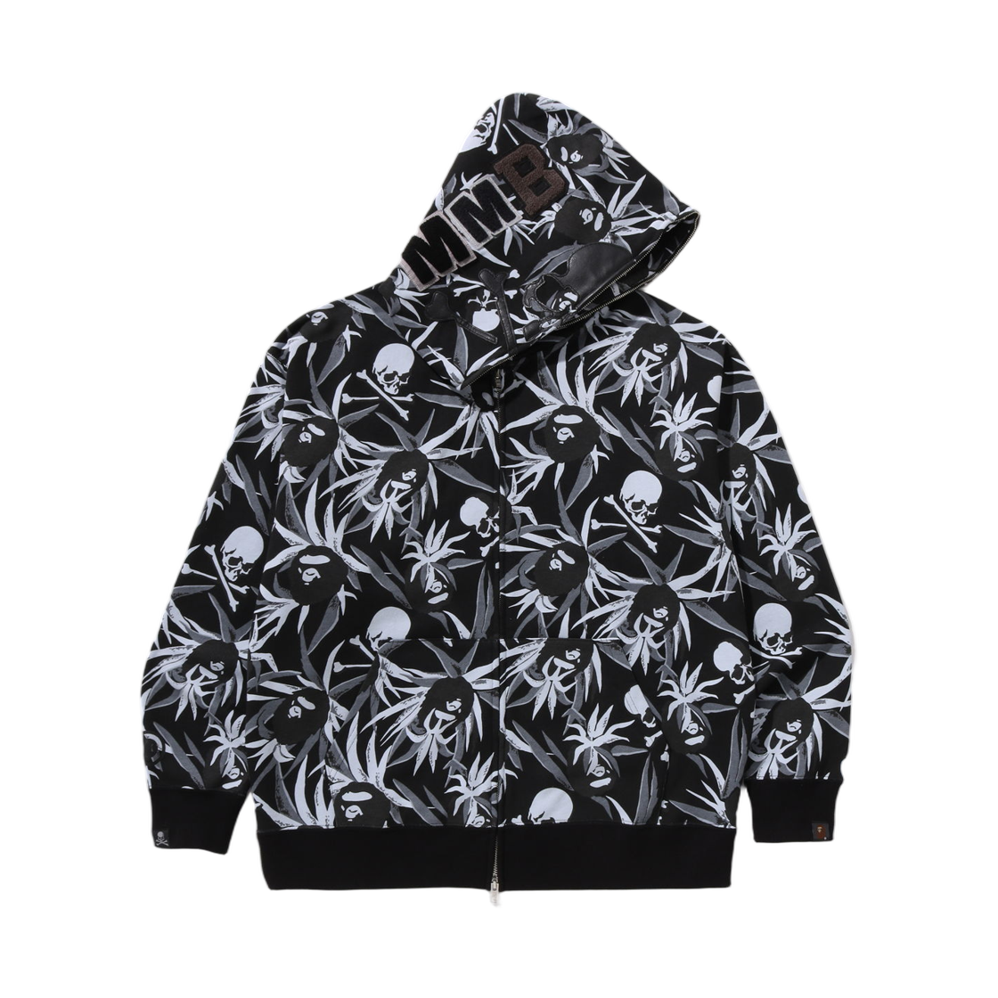 베이프 x 마스터마인드 트로피컬 카모 스컬 릴렉스드 핏 풀 집 후드 블랙