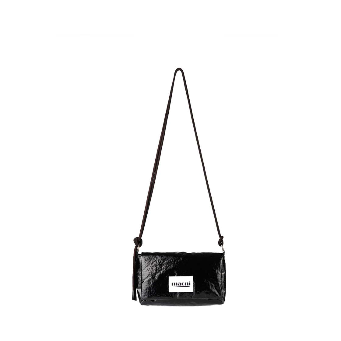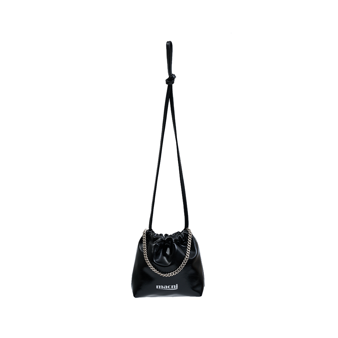 마크니 글로시 스트링 크로스 백 블랙