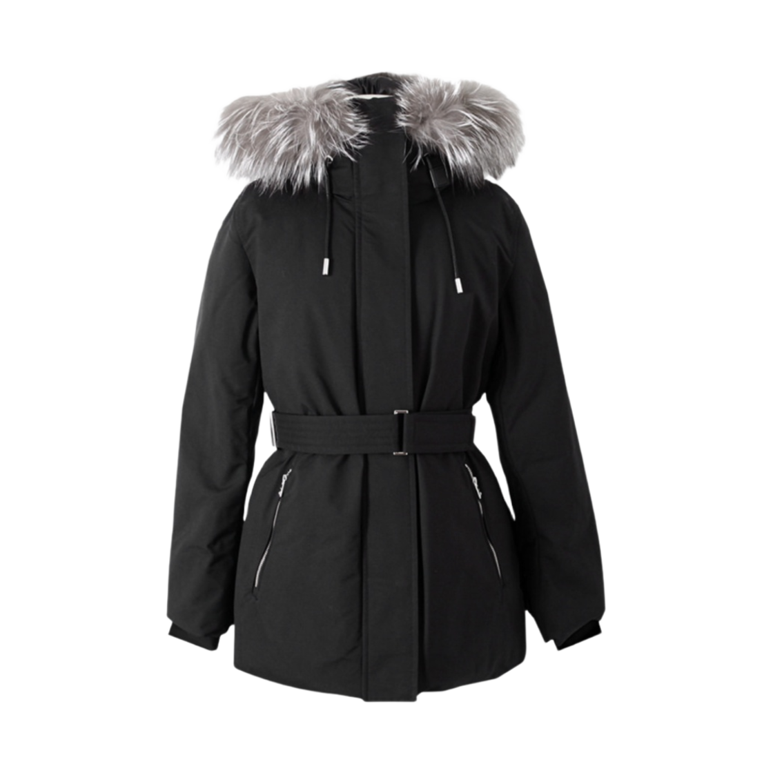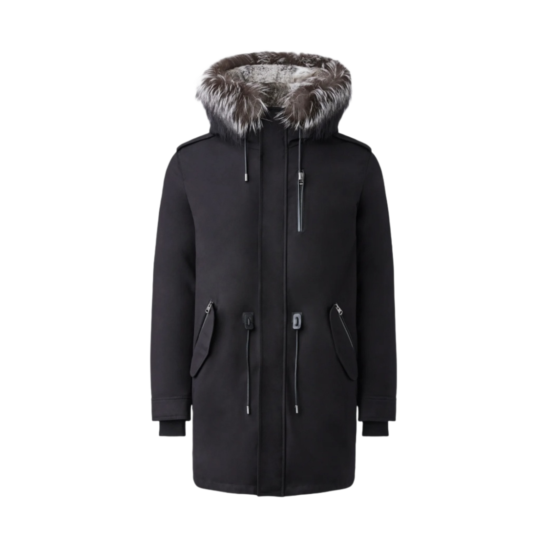 맥카지 리무버블 실버 폭스 퍼 트림 모리츠 래빗 퍼 라인드 트윌 파카 블랙
