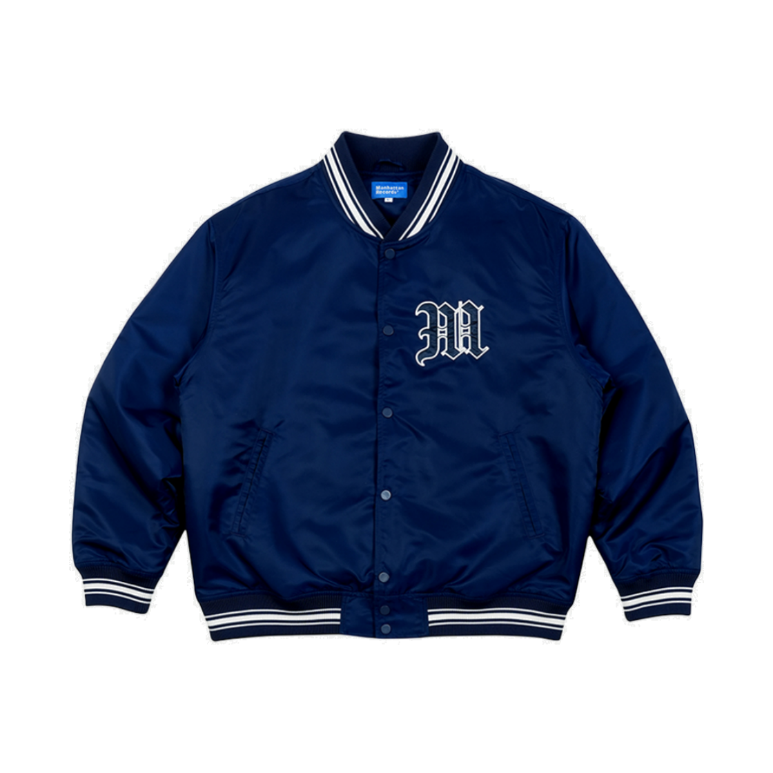 맨하탄 레코즈 엠 로고 사틴 베이스볼 자켓 - 네이비