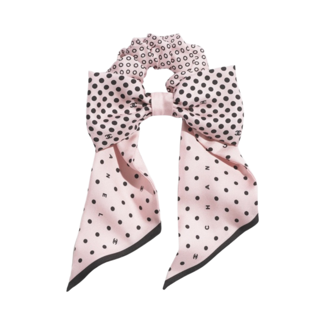 (W) 샤넬 헤어 액세서리 실크 트윌 & 라이트 핑크 블랙