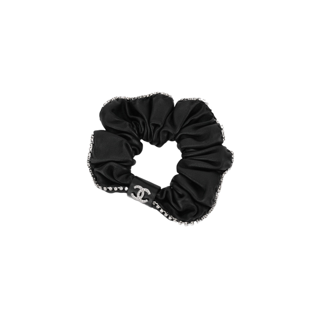 (W) 샤넬 헤어 액세서리 램스킨 스트라스 & 실버 메탈 블랙