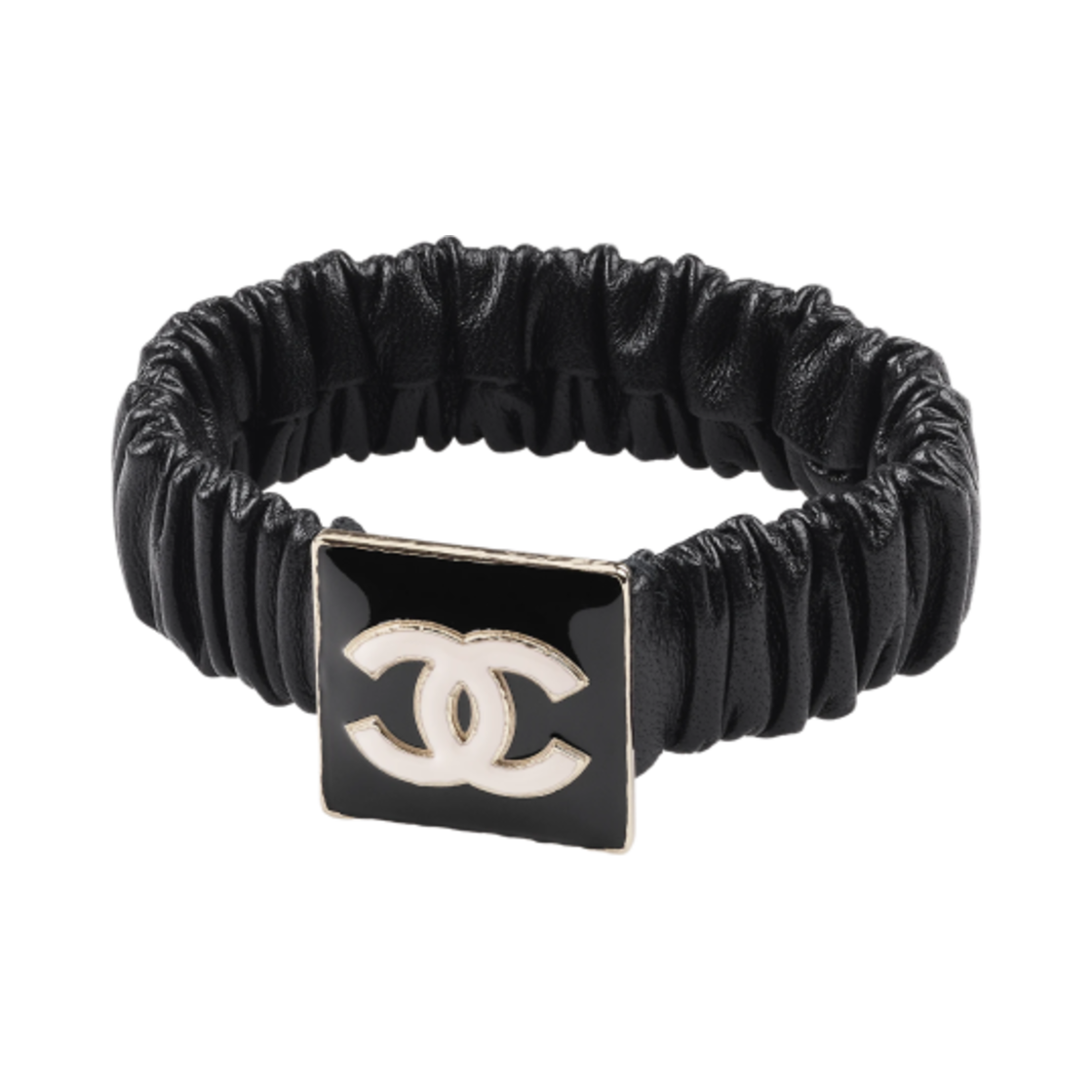 (W) 샤넬 헤어 액세서리 램스킨 메탈 레진 & 블랙 골드 화이트