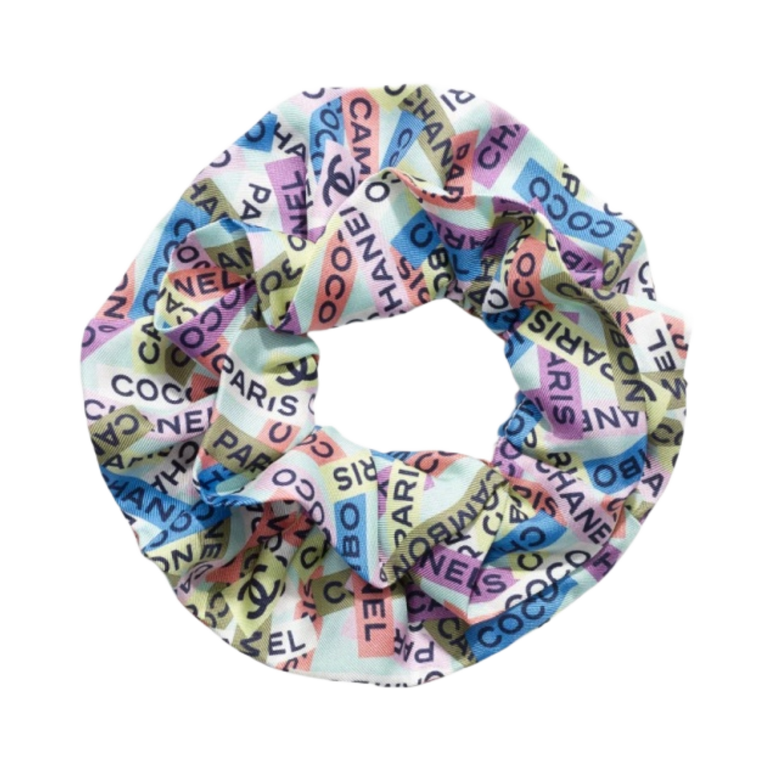 (W) 샤넬 헤어 액세서리 실크 트윌 라이트 터콰이즈 멀티컬러