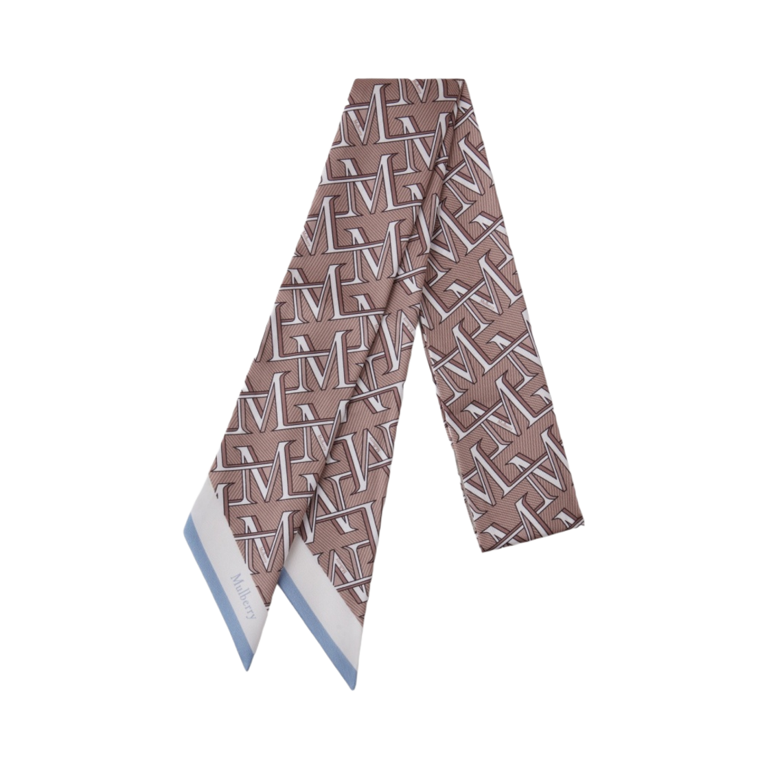 (W) 멀버리 리사이클드 폴리에스터 로고 트윌 스키니 스카프 메이플 티크