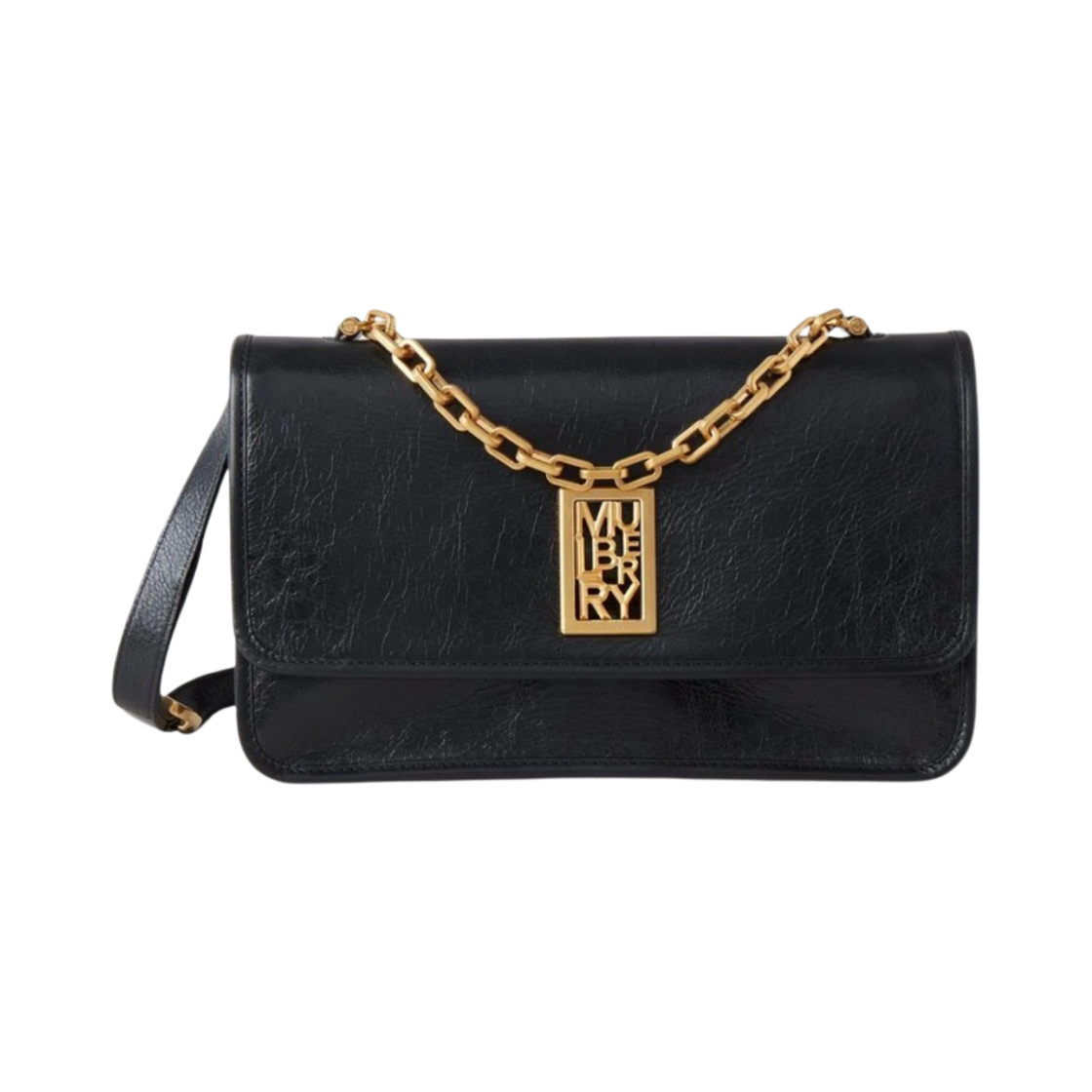 멀버리 하이 샤인 레더 세이디 렉탱글 블랙