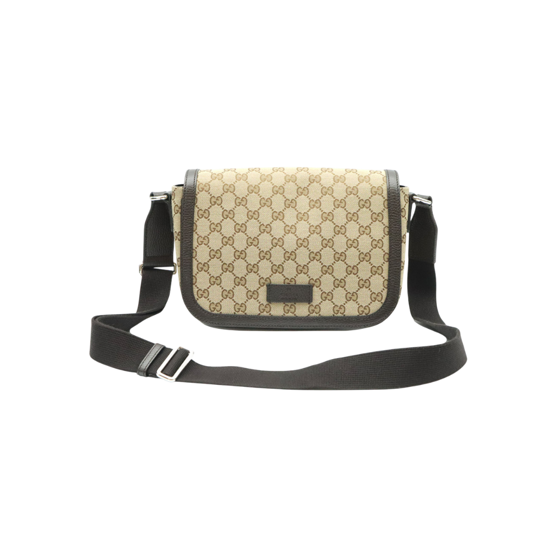구찌 GG 캔버스 브라운 레더 트림 플랩 메신저백 겸 크로스백