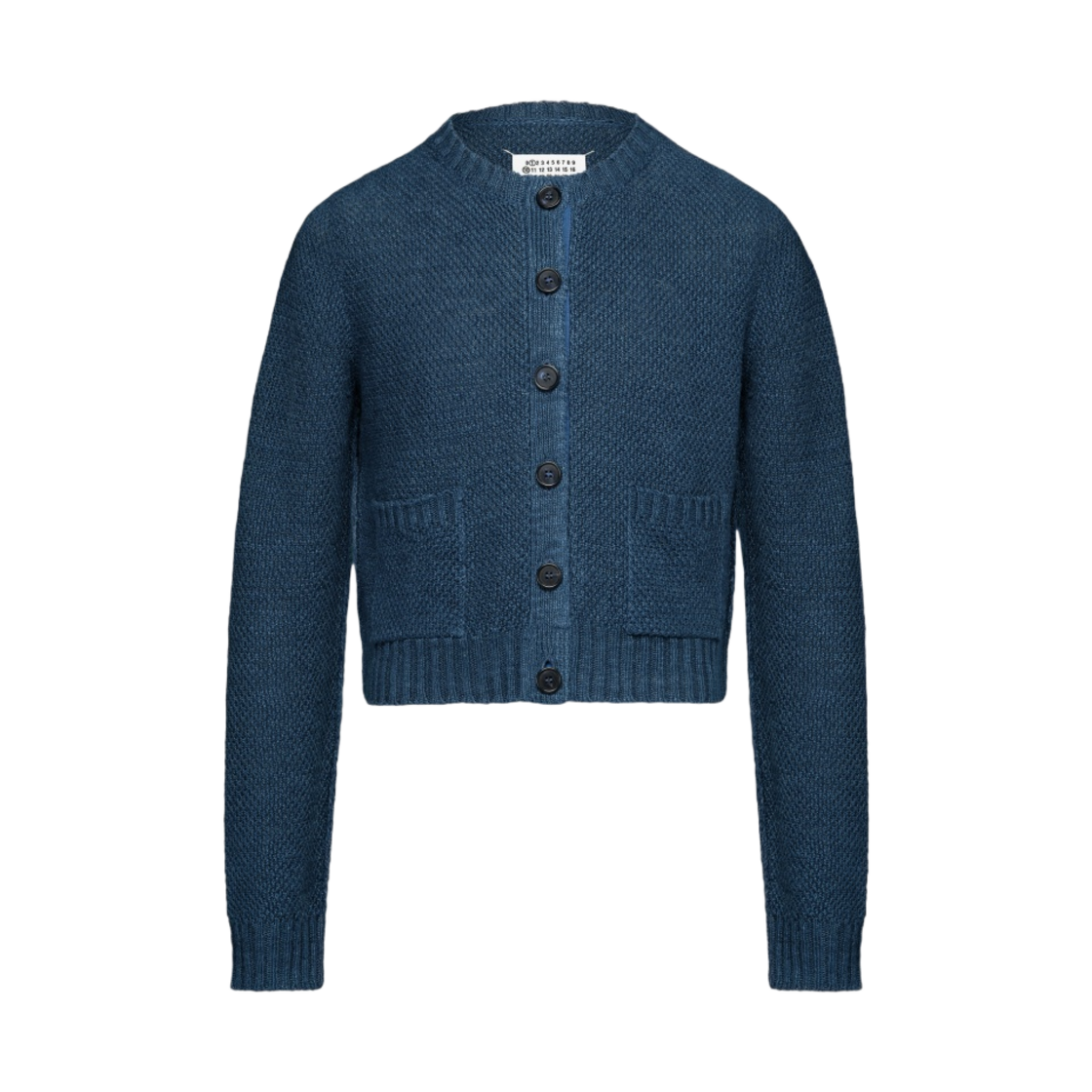 (W) 메종 마르지엘라 헴프 베스킷 위브 니트 가디건 블루