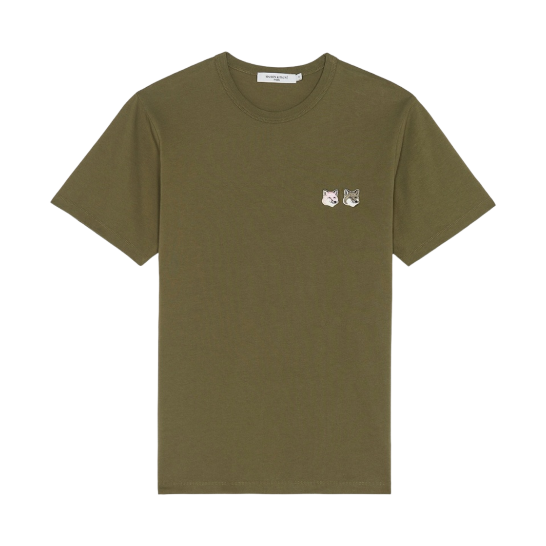 메종 키츠네 더블 모노크롬 폭스 헤드 패치 자수 클래식 티셔츠 카키 그레이