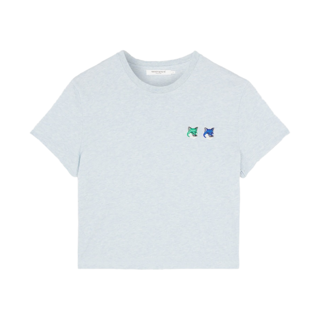 (W) 메종 키츠네 시즈널 더블 폭스 헤드 패치 크롭 티셔츠 블루 헤이즈 멜란지