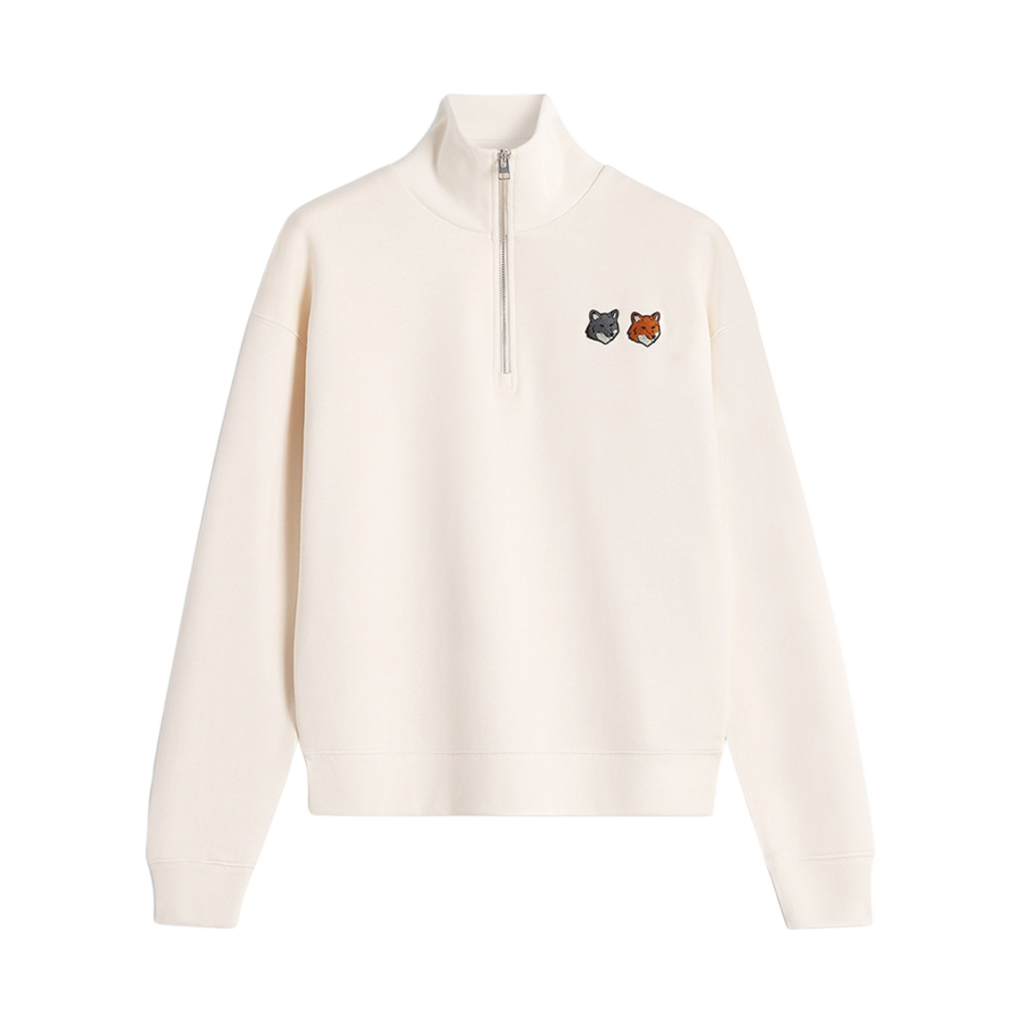 (W) 메종 키츠네 더블 볼드 폭스 헤드 하프 집 컴포트 스웨트셔츠 라떼