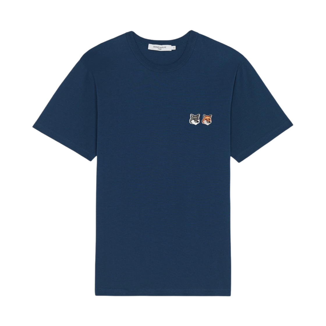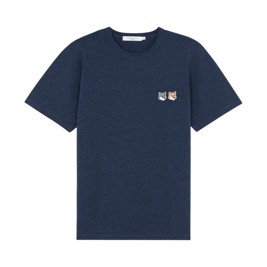 메종 키츠네 더블 폭스 헤드 패치 클래식 티셔츠 네이비 멜란지