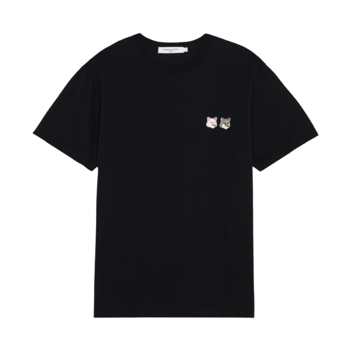 메종 키츠네 더블 모노크롬 폭스 헤드 패치 클래식 티셔츠 블랙