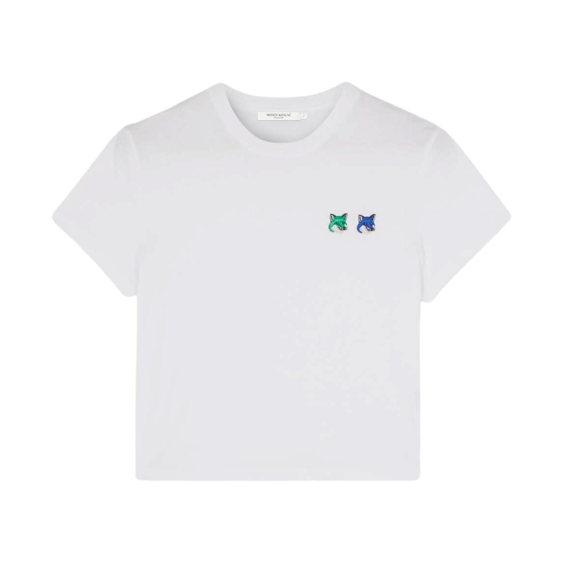 (W) 메종 키츠네 시즈널 더블 폭스 헤드 패치 크롭 티셔츠 화이트