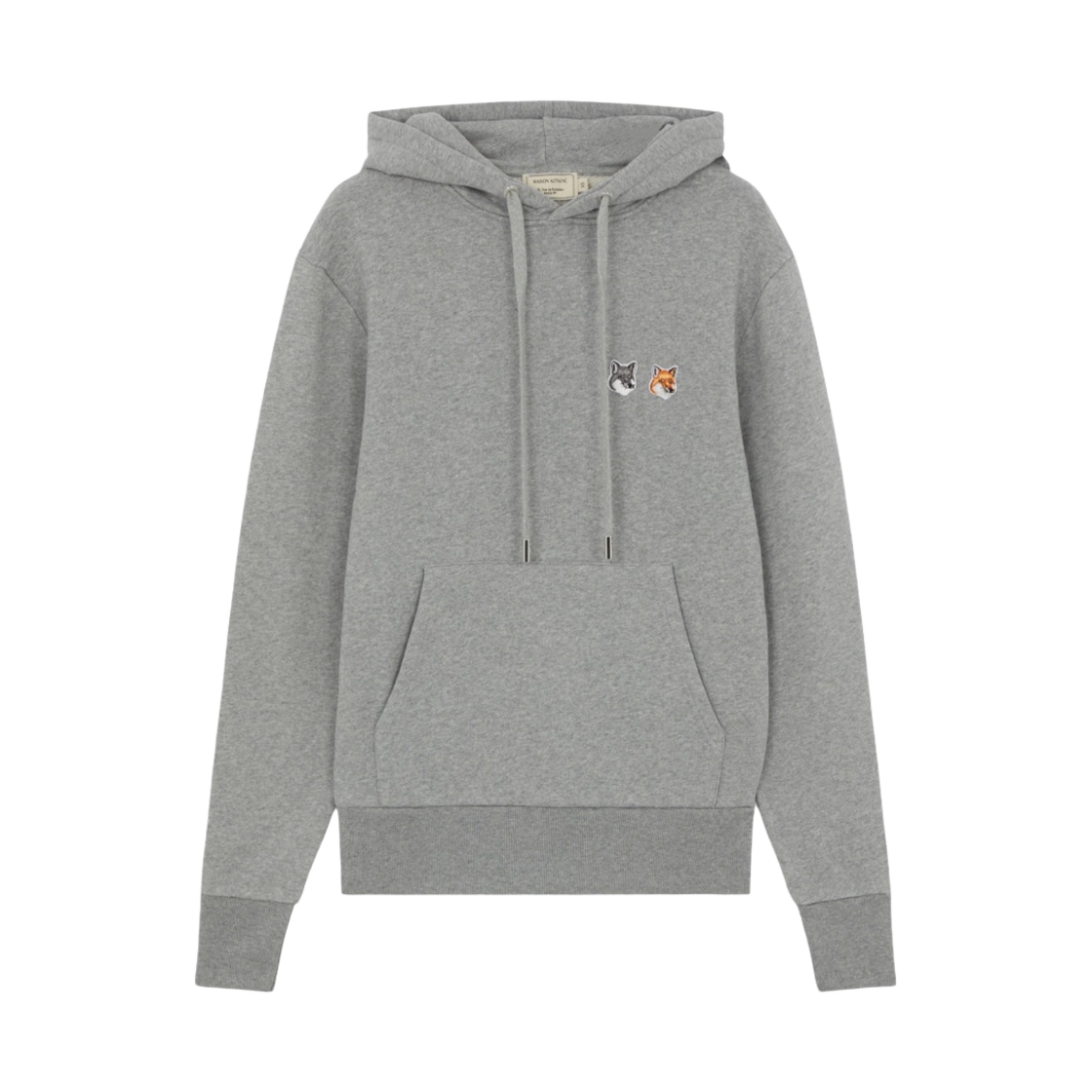 메종 키츠네 더블 폭스 헤드 패치 후드 그레이 멜란지