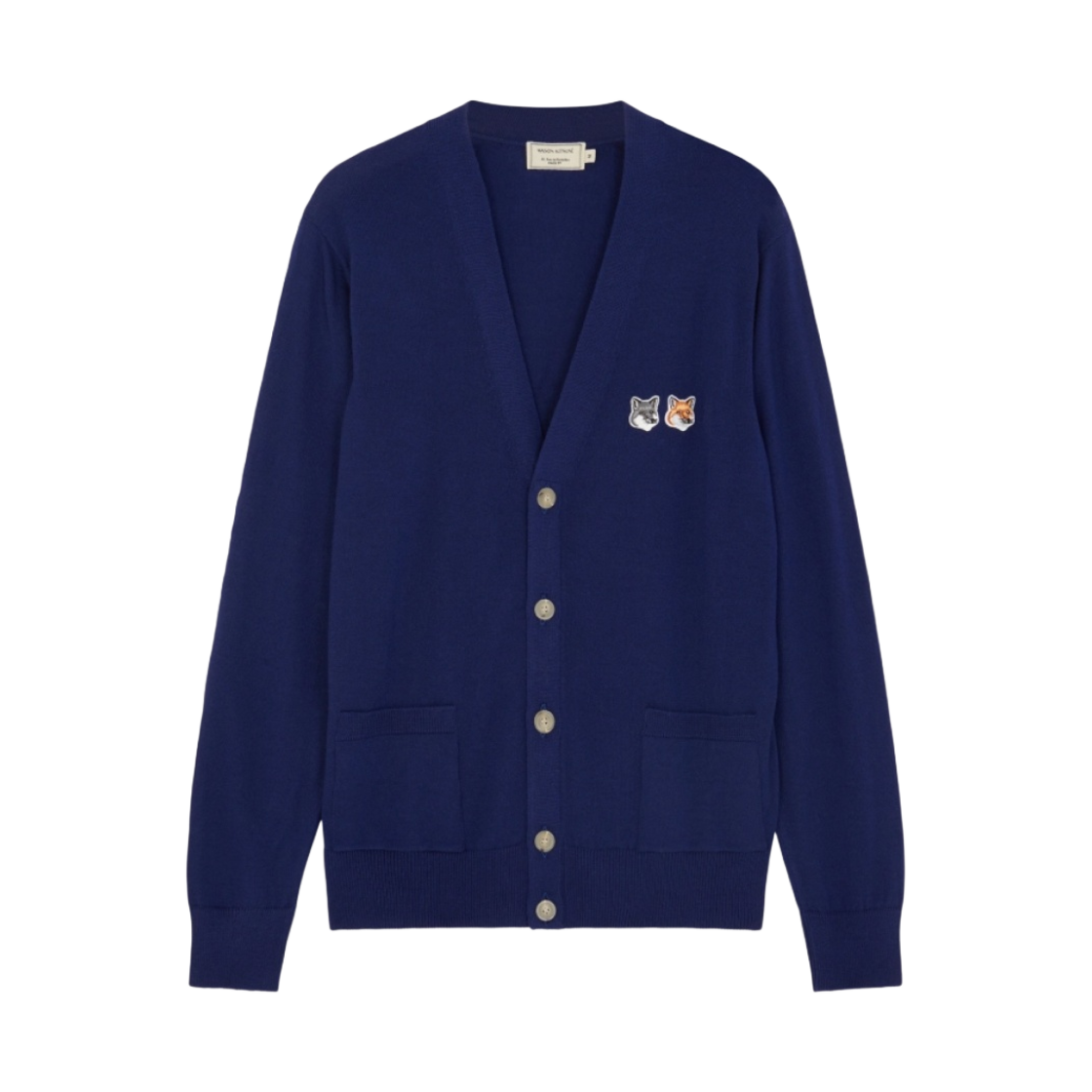 메종 키츠네 더블 폭스 헤드 패치 가디건 네이비