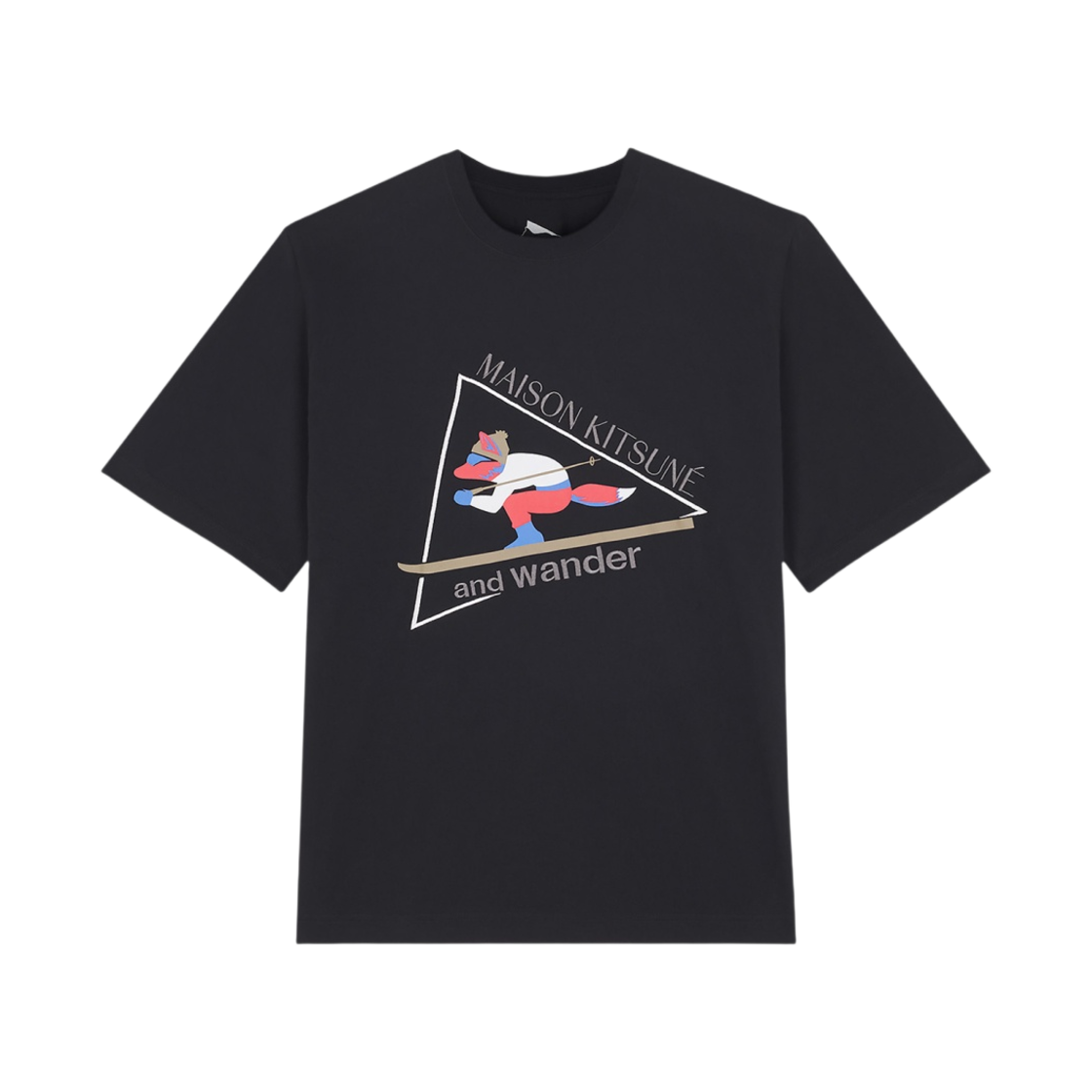메종 키츠네 x 앤드 원더 스키 폭스 드라이 코튼 티셔츠 블랙