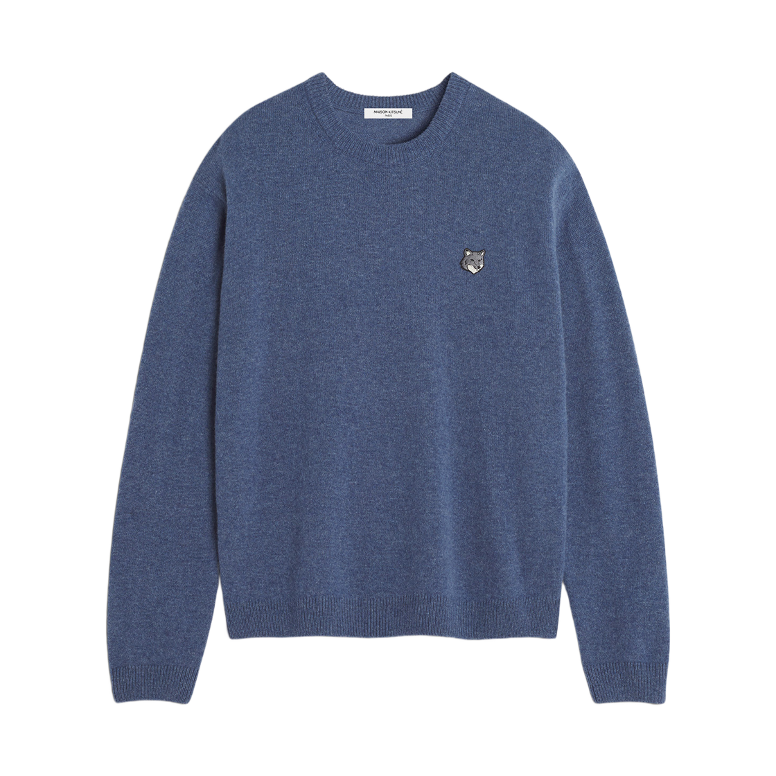 메종 키츠네 폭스 헤드 패치 레귤러 라운드넥 점퍼 인디고