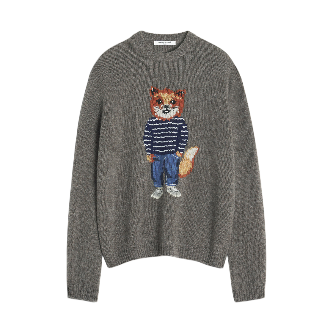 메종 키츠네 빅 폭스 헤드 자카드 풀오버 니트 그레이