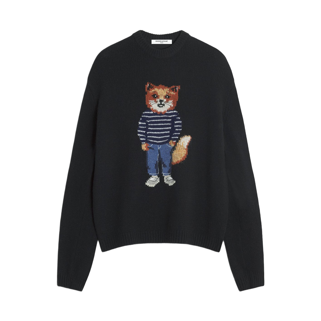메종 키츠네 드레스드 폭스 인타르시아 울 점퍼 블랙