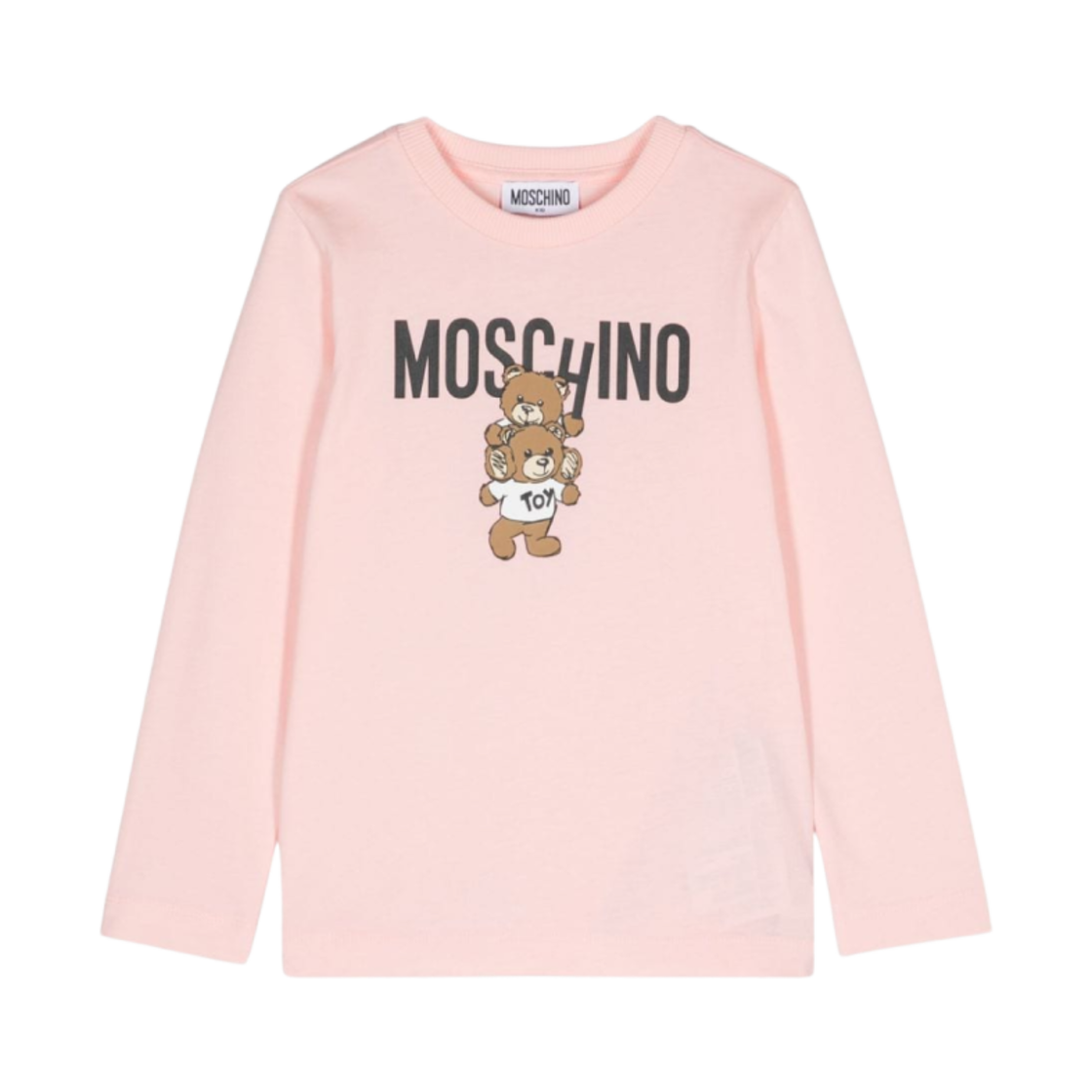 (키즈) 모스키노 테디 베어 로고 패치 롱 슬리브 티셔츠 라이트 핑크