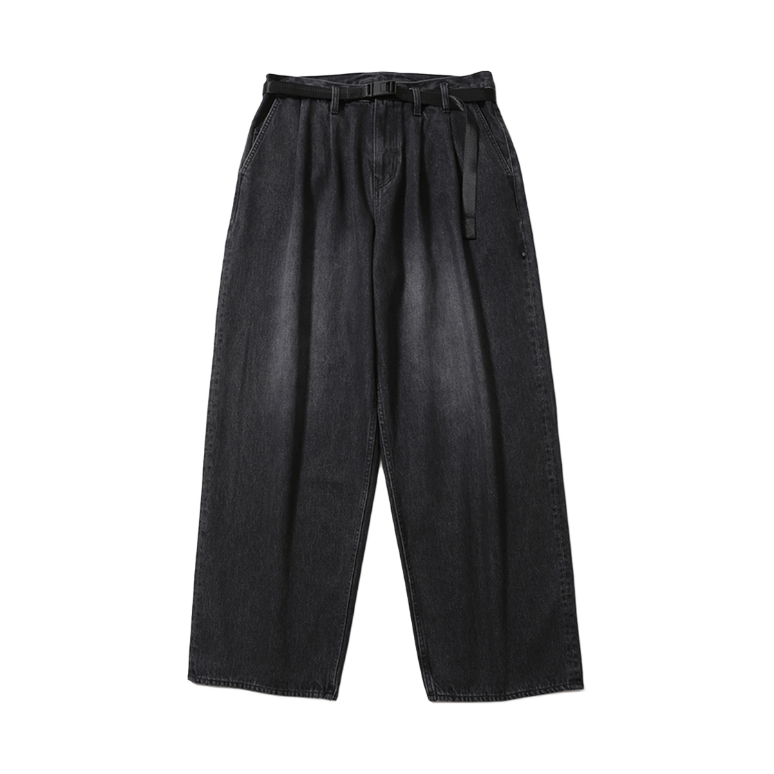 모이프 와이드 벨트 데님 팬츠 워시드 블랙