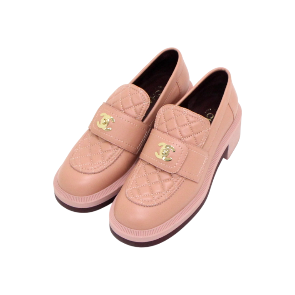 샤넬 G38147 금장 CC 로고 턴락 퀼티드 핑크 레더 모카신 로퍼 aa57615