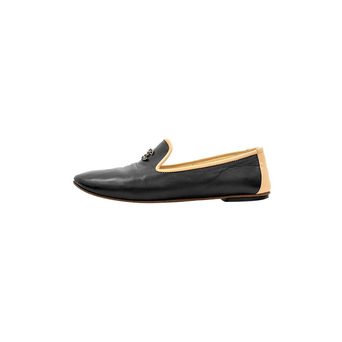 샤넬 여성 CC로고 램스킨 투톤 모카신 발레리나 슈즈 플랫 로퍼