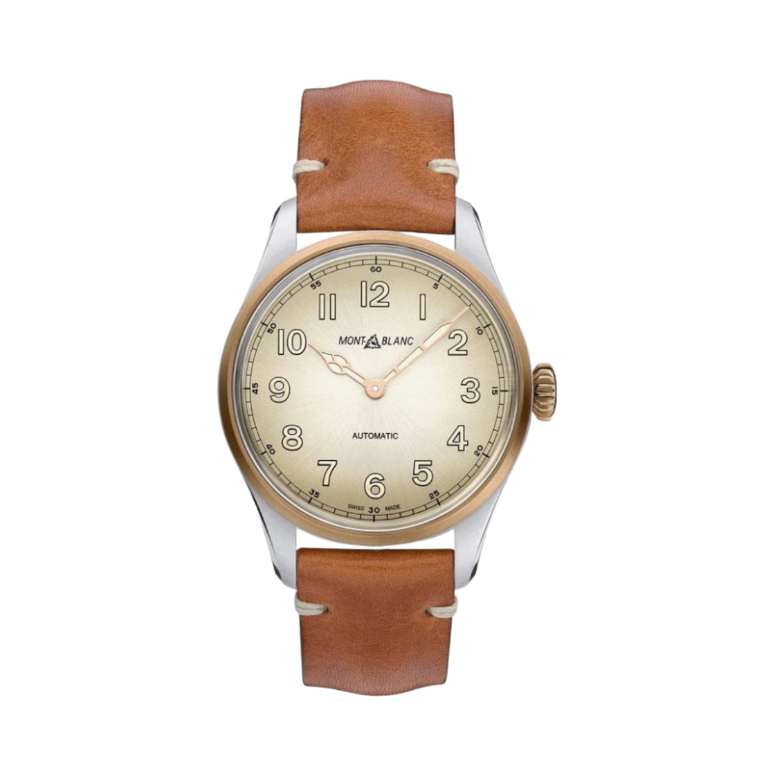 몽블랑 1858 오토매틱 40mm 브론즈 스테인리스 스틸 레더 베이지