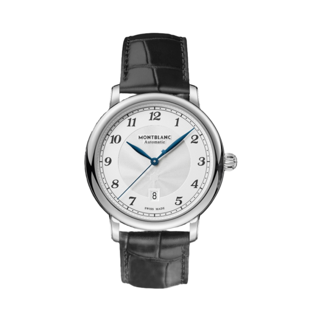 몽블랑 스타 레거시 오토매틱 데이 데이트 39mm 블랙 레더 스테인리스 스틸 화이트