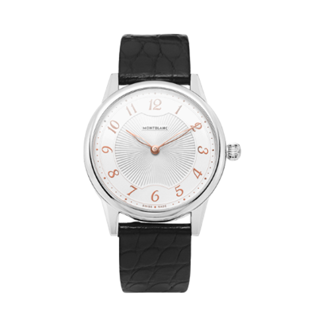 몽블랑 트래디션 오토매틱 데이트 40mm 블랙 레더 스테인리스 스틸 화이트