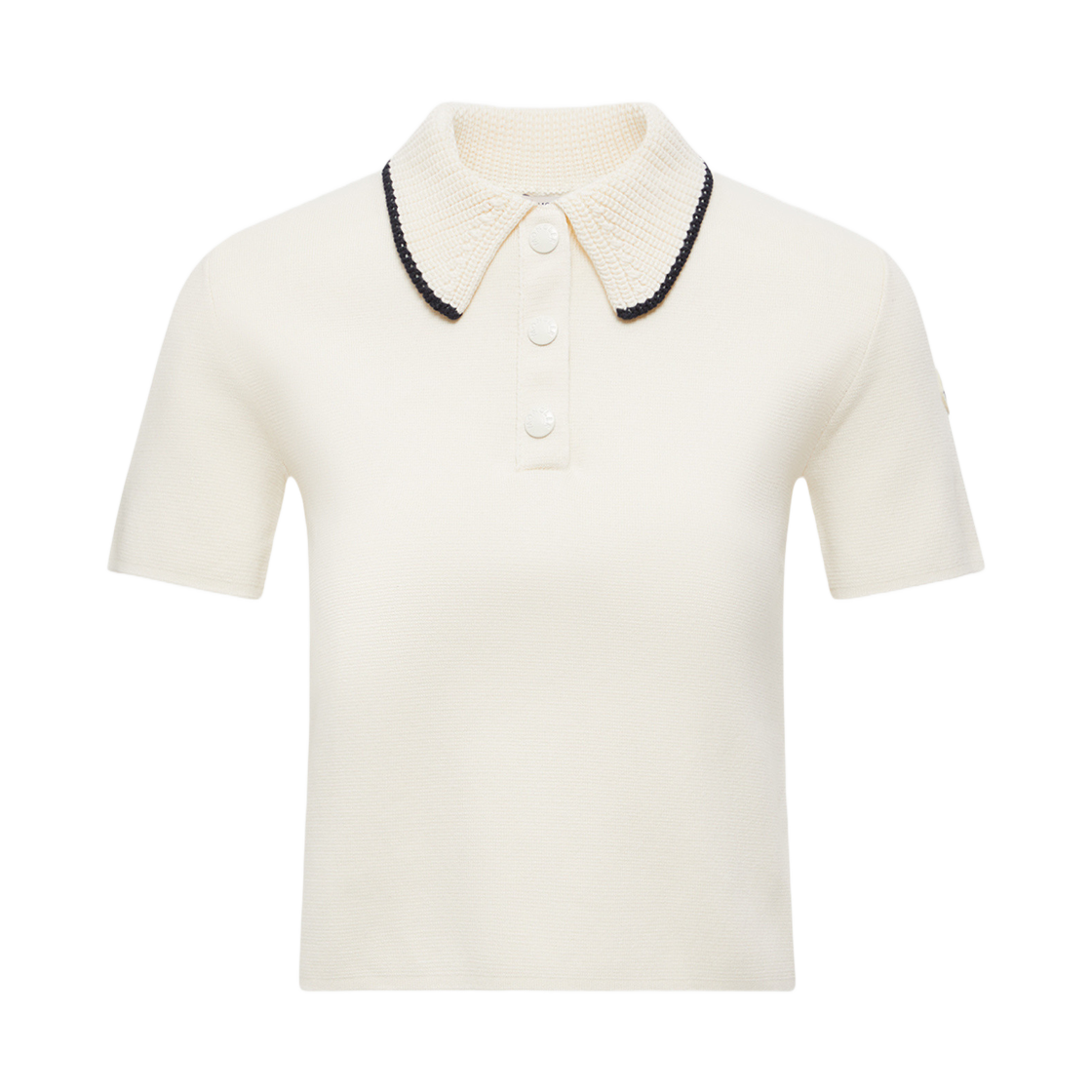(W) 몽클레르 니트 코튼 폴로 셔츠 화이트 - 25SS