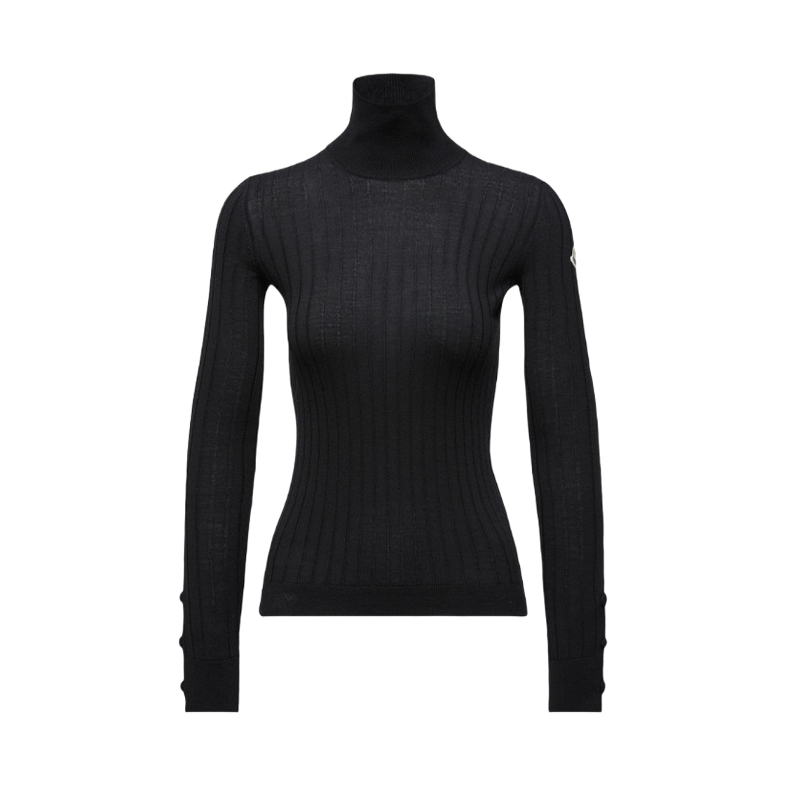 (W) 몽클레르 울 앤 캐시미어 폴로 넥 점퍼 블랙 - 25FW