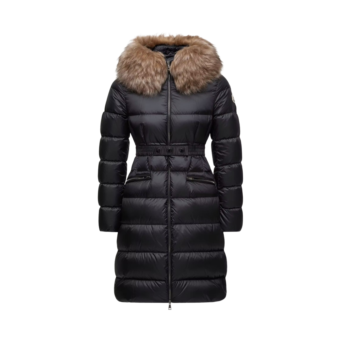 (W) 몽클레르 보에딕 후드 셔링 트림 롱 다운 자켓 블랙 - 25FW